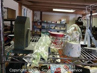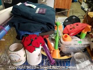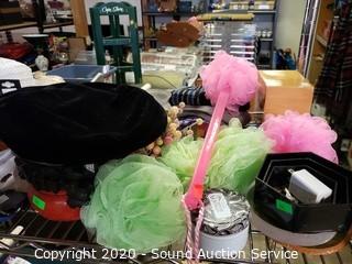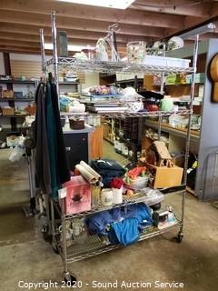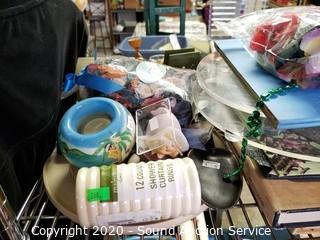 Lot Details: Cart NOT included. Includes doll stands, handled bath brushes, potpourri, bowls, sweaters, pants, glasses, shirts and various decor.