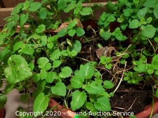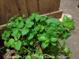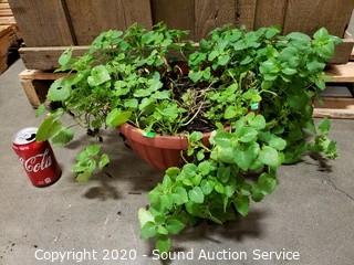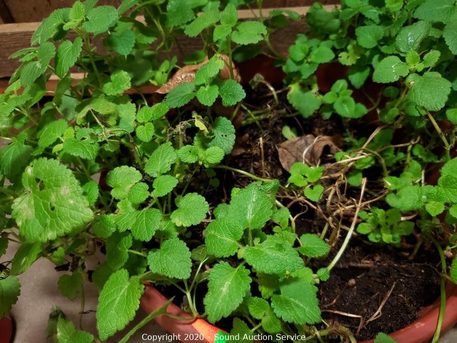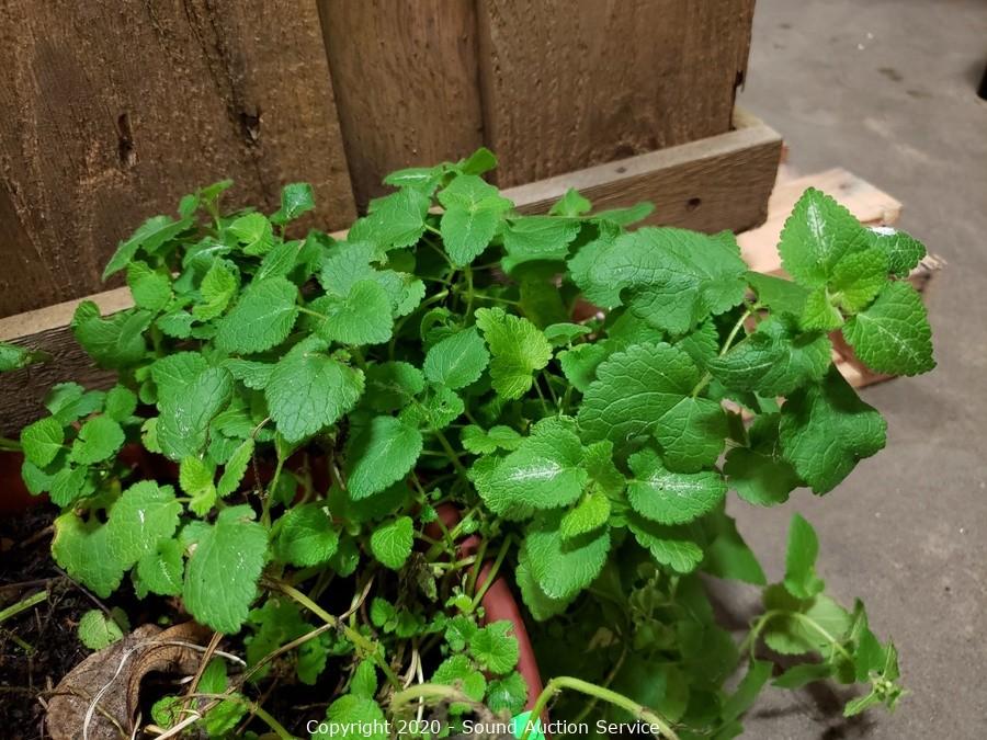 Lot Details: Has a savory scent, unsure what it is. 6" T x 20" spread plant, 7" x 12" plastic pot.
