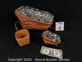 Lot #0352: 3 Longaberger Sleigh Baskets w/Wrought Iron Stands