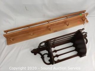 Lot #0043: Coat/Plate Rack & Corner Knick Knack Shelf