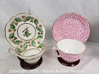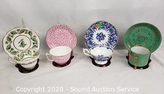 Lot #0050: Set of 4 Fine China Teacups & Saucers w/Displays