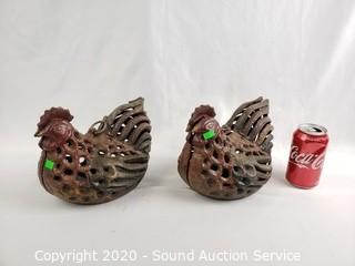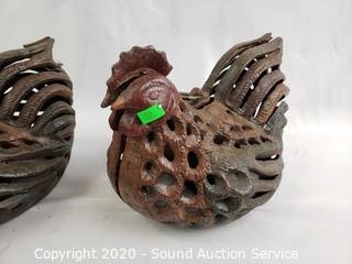 Lot #0157: 2 Cast Iron Rooster Fairy Lights