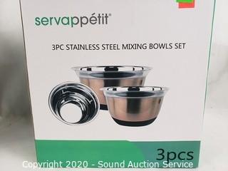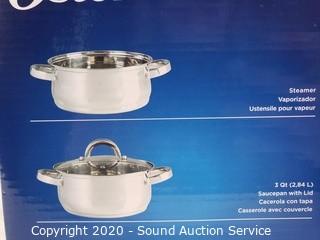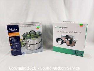 Lot #0148: 3pc Oster Steamer Set & 3pc Stainless Mixing Bowls