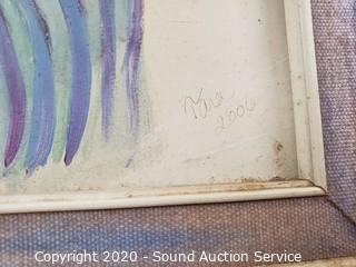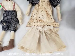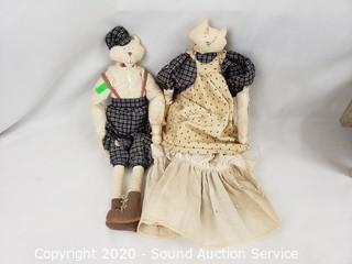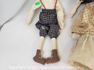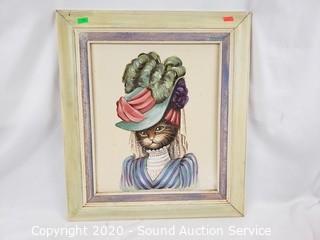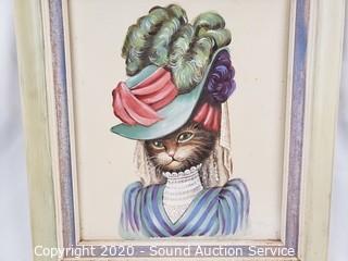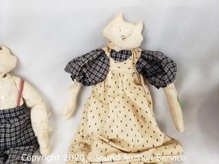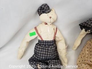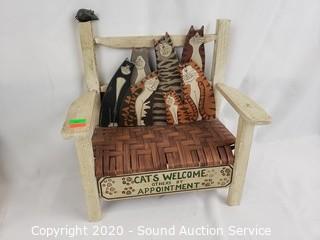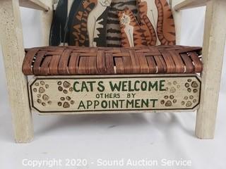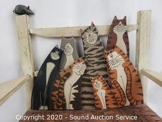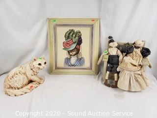 Lot #0044: 5pc Cat Decor Artwork, Statuary, Dolls, Bench