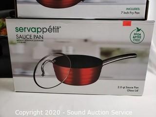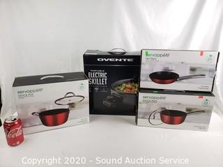Lot #0212: Like New Fry Pan, 2 Sauce Pans & Skillet