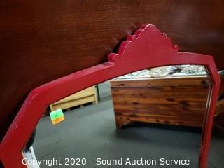 Lot #0080: Vtg. Red Finish Wall Mirror