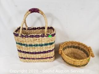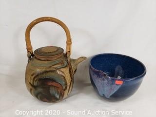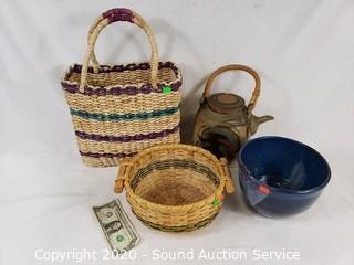 Lot #0284: Woven Baskets, Signed Pottery Teapot & Bowl