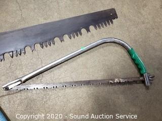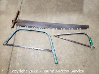 Lot #0284: 2 Bow Saws & Vintage 4ft Cross Cut Saw