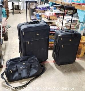 Lot Details: 1 full size 27" x 17" x 9", 1 carry on 23" x 14" x 8" & travel bag.
