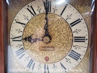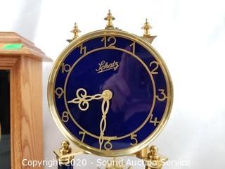 Lot Details: One Anniversary is working, the other Schatz the wire that holds the pendulum has broke free. Larger quartz mantle clock works, the smaller electric Seth Thomas is not working. 12" H x 6" Anniversary clocks, 6" x 5" & 11" x 9.5" mantle clocks.