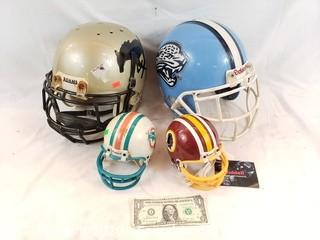 Lot #0329: 4pc Miniature & Full Size Football Helmets