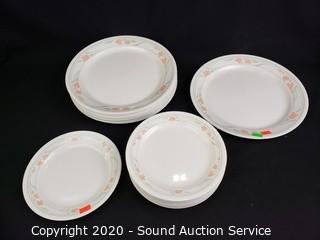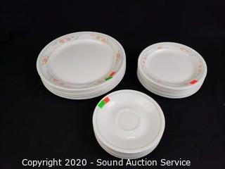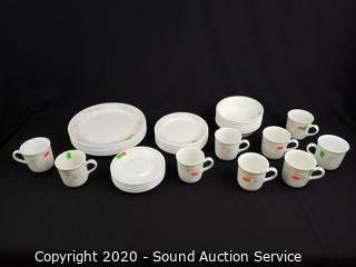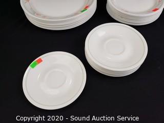 Lot Details: 8 bowls, 11 saucers, 12 snack plates, 11 dinner plates, 9 cups.