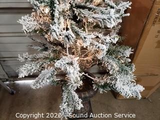Lot #0307: Frosted 3.5ft Pre-Lit Potted Tree