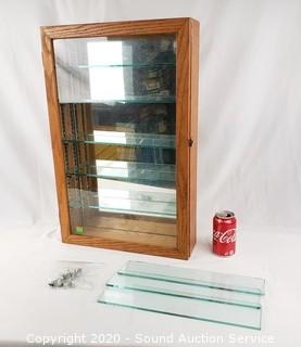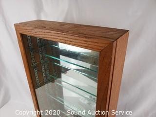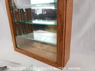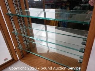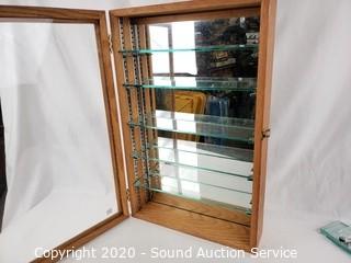 Lot #0039: Mirrored Oak Cabinet w/5 Glass Shelves