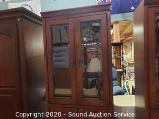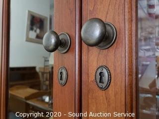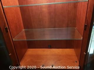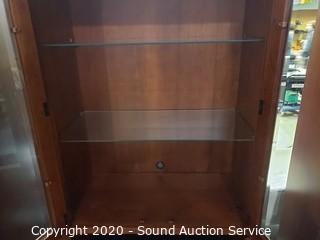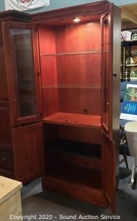 Lot #0002: Nice Lexington Cherry Finish Lighted Cabinet