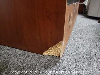 Lot Details: In excellent condition. Glass shelves, cord hole. 78" H x 32" W x 16" D. Matches the next & previous lot.