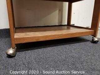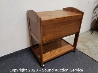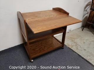 Lot #0006: Oak Drop Leaf Microwave Kitchen Cart