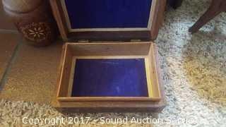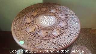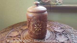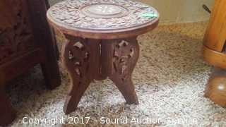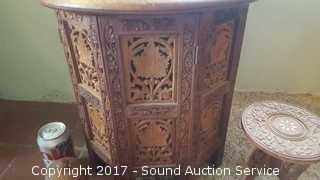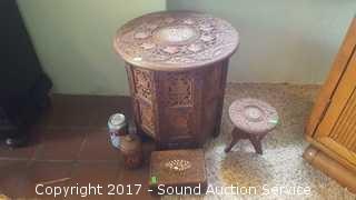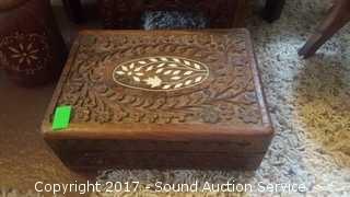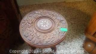 Lot #0047: Carved Bone Inlaid Table Plant Stand & Trinket Box