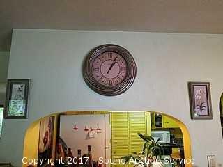 Lot #0075: ECW 20" Wall Clock & Floral Print Decor