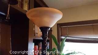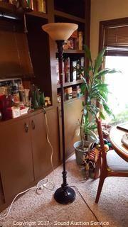 Lot #0031: Glass Shade Metal Base Floor Lamp 70"