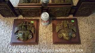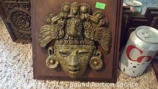 Lot #0030: Indonesian Style Wall Mirror & Mask Decor