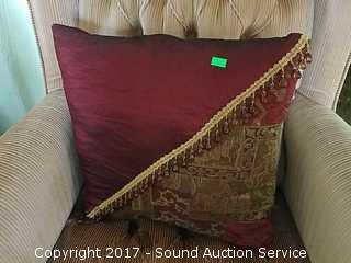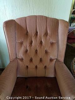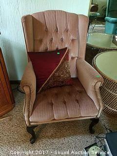 Lot #0058: Nice Vtg. Wingback Chair w/Throw Pillow