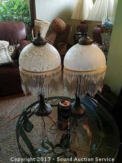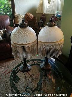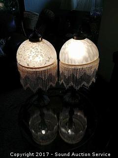 Lot #0061: Pair of Bronze & Glass Beaded Table Lamps