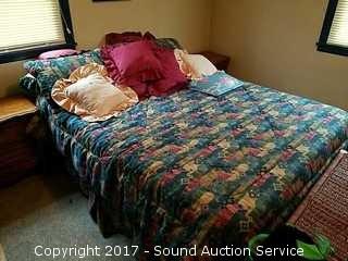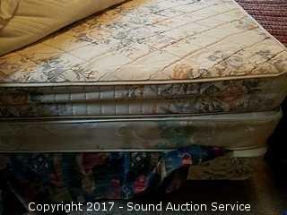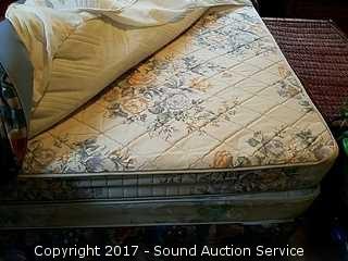 Includes: Frame, boxspring, 2 mattresses, comforter and throw pillows.