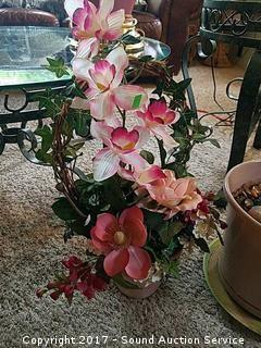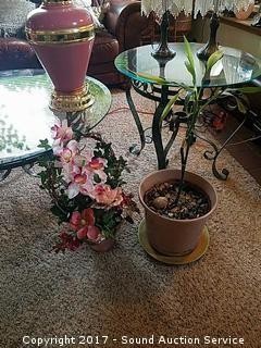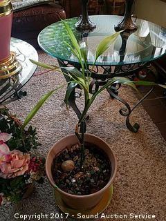 Lot #0057: Small Potted Palm & Silk Potted Plant