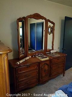 Lot #0136: Stanley Mirrored 9 Drawer Lowboy Dresser
