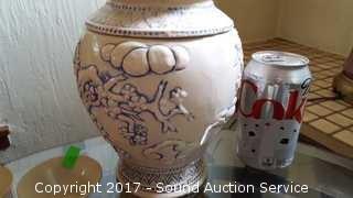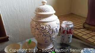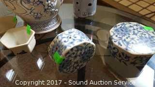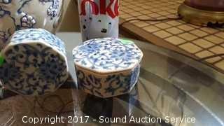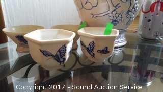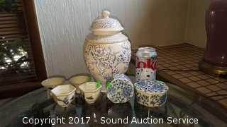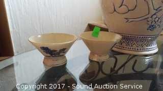 Lot #0037: Vtg. Blue Saki Cups, Urn & Trinket Dish