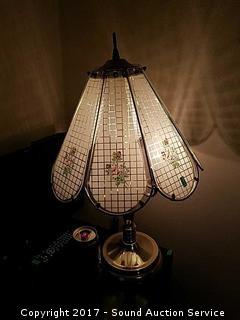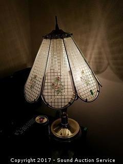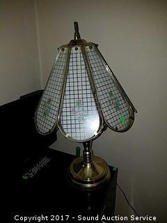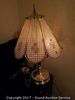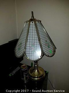 Lot #0149: Vtg. Brass Touch Lamp w/Glass Shade 21"