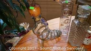 Includes: Tequila Romance bottle, Mexican blown art glass caterpillar bottle.