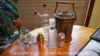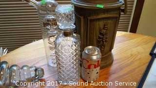 Lot #0015: Vtg. Liquor Decanters, Martini Shaker & Ice Bucket
