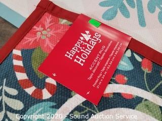 Lot #0327: 2 Like New Happy Holidays 21x34" Accent Rug