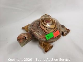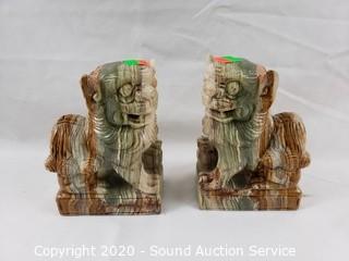 Lot #0201: 2 Stone Carved Foo Dogs & Turtle