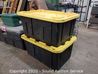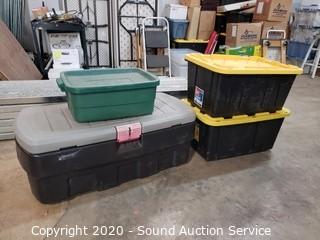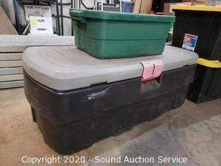 Lot Details: 17" x 40" x 19", (2) 27 gallon tough boxes 14" x 20" x 30" and Rubbermaid 8.5" x 15" x 21".