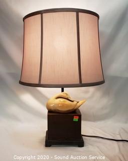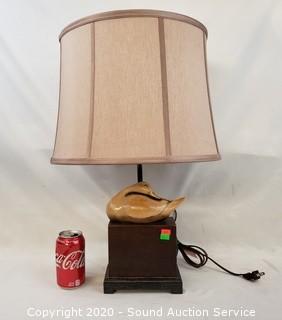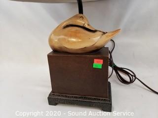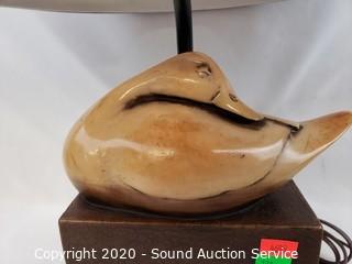Lot #0170: Unique Carved Wood Duck Bronze Finish Lamp