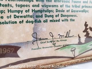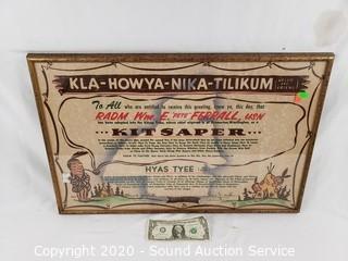 Lot #0211: Vtg. 1967 Kitsap Tribe Plaque