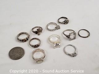 Lot #0227: 10 Sterling Silver Rings S:6.5, 7, 7.5 & 8
