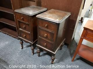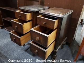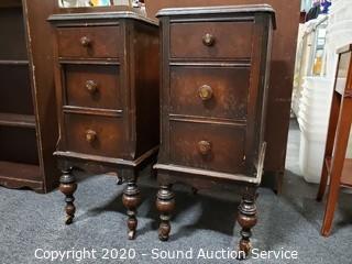 Lot #0214: 2 Antique Mahogany 3-Drawer Rolling Side Tables