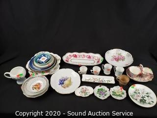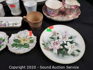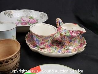 Lot Details: Includes 3pc James Kent "Apple Blossom Chintz" cream, sugar and plate, German, English, 24K gold etched Chokin and others.