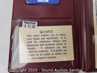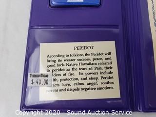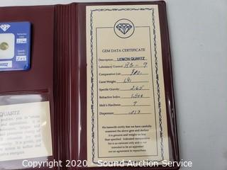 Lot Details: Includes topaz, peridot and quartz. All come with displays and gem data certificates with various information about the gem.