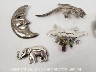 Lot #0243: 5 Large Sterling Silver Pins