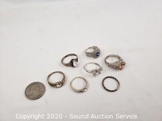 Lot #0236: 7 Sterling Silver Rings S:8, 9, 10 & 12