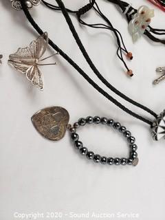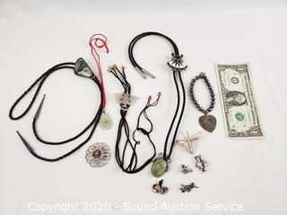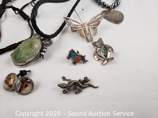 Lot #0235: 925 Silver Pins, Bracelet, Earrings, Bolos & More