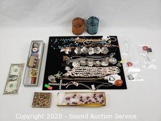 Lot #0058: Assortment of Fashion Jewelry & Compacts