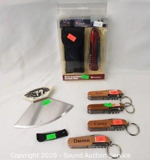 Lot #0170: Multi-Function Folding Knives, Pocket Knife & Ulu
