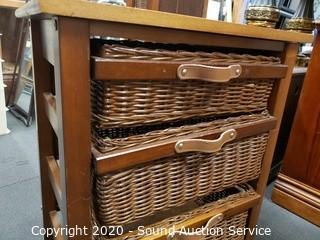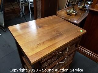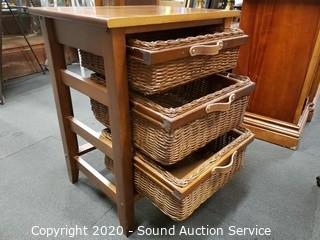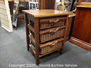 Lot #0296: Nice Pine 3 Wicker Drawer Side Table