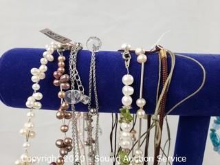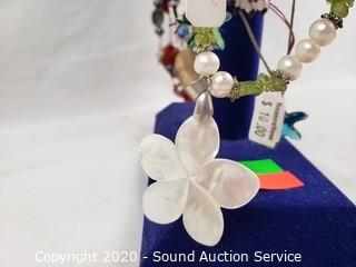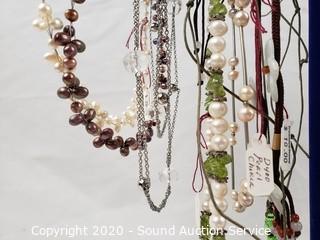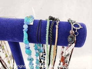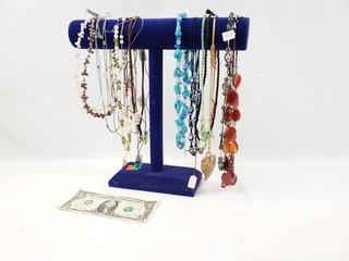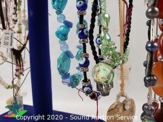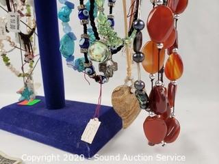 Lot #0062: Pearl, Stone & Art Glass Necklaces w/Display
